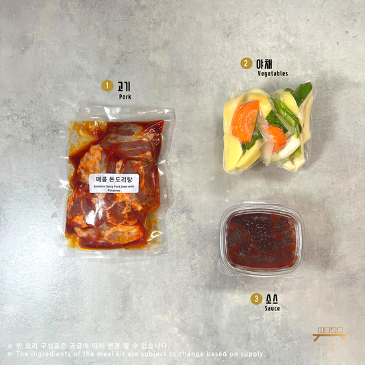 매주 변경되는 밀키트 세트 메뉴로 2인분 기준이며 반조리와 완조리 밀키트로 구성되어 있습니다.
