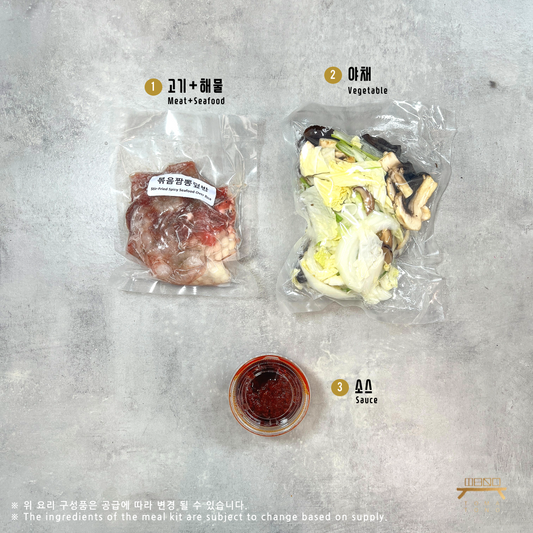 매주 변경되는 밀키트 세트 메뉴로 2인분 기준이며 반조리와 완조리 밀키트로 구성되어 있습니다.
