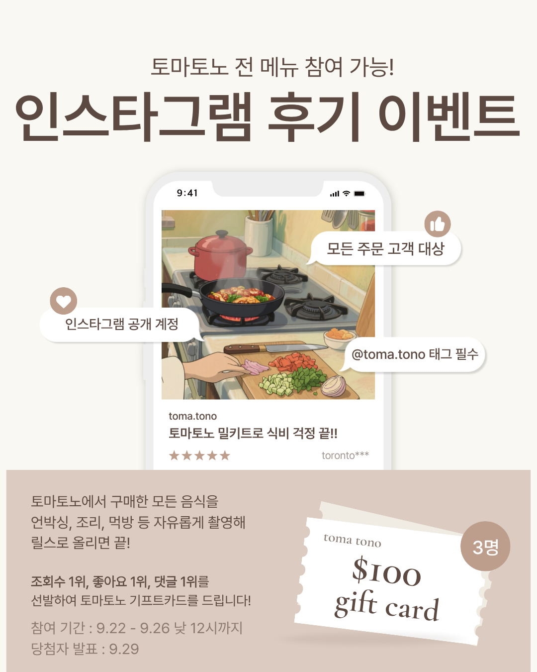 Order $300 or more from Tomatono Catering, leave a review on Instagram or Google, and get a chance to win a Meal Kit Set or Premium Meal Kit Set! 🥳🍴