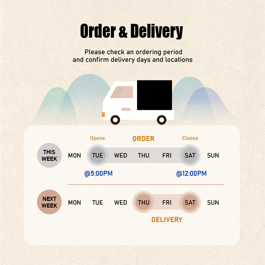 * 配送日期:星期三至星期六。请查看以下的配送时间表。