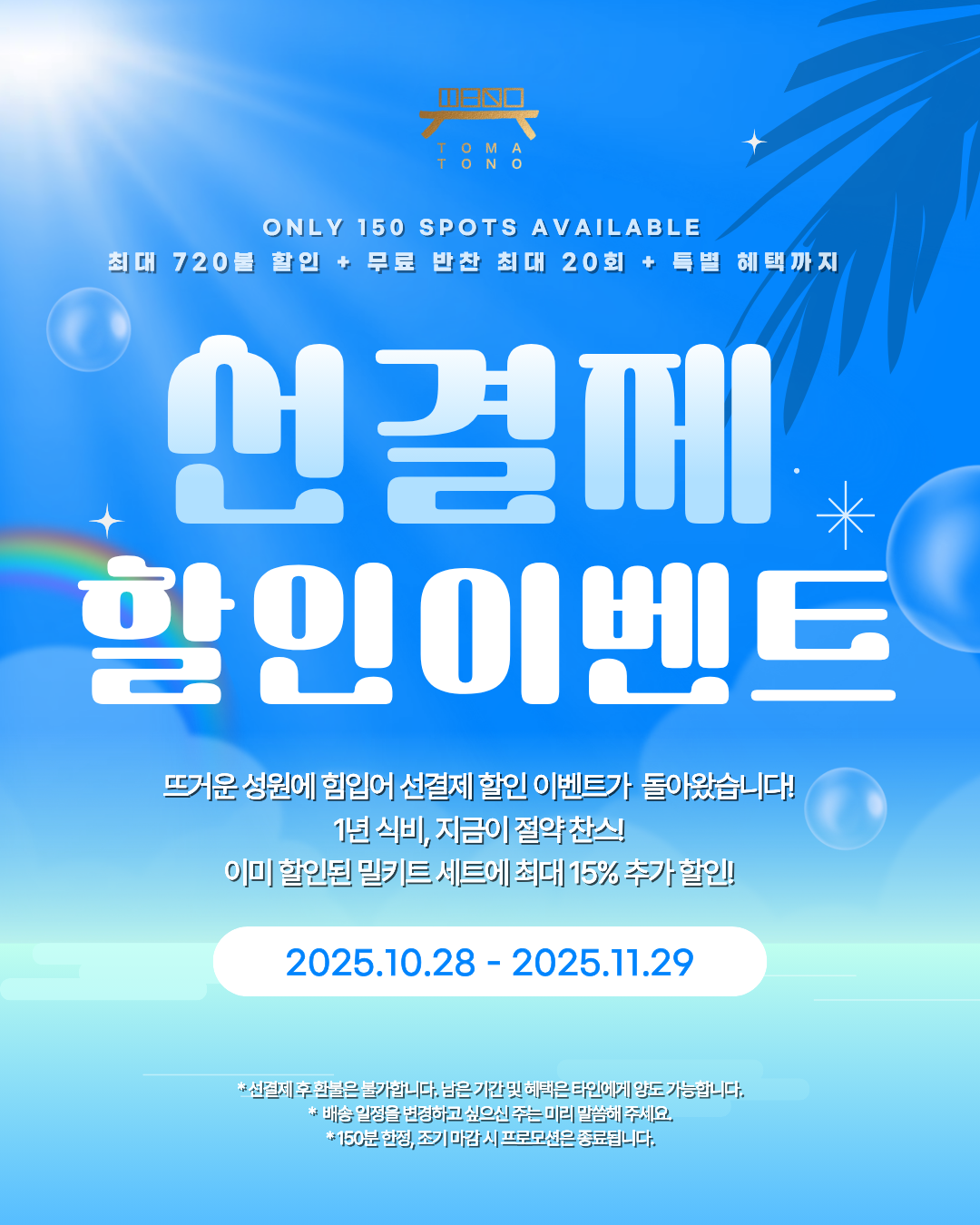 뜨거운 성원을 힘입어 선결제 할인 이벤트가 돌아왔습니다! 이번엔 절대 놓치지 마세요!!